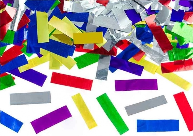 Метални конфети парти 40 см са идеалното допълнение за вашите тържества. Цветните метални правоъгълничета създават зашеметяващ визуален ефект, а използването им е лесно благодарение на управлението чрез механично завъртане на тубуса.