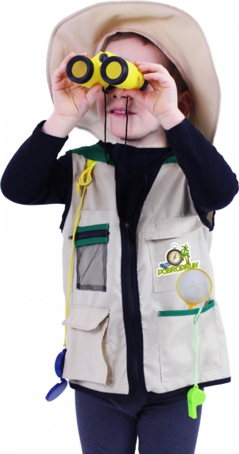 Пълен костюм с елече, шапка и комплект аксесоари. Децата имат всичко под ръка за приключения и въображаема игра.