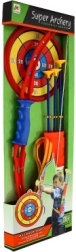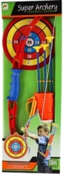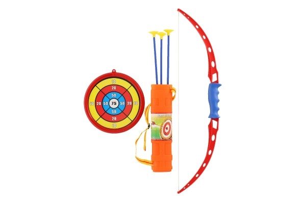Този детски комплект за стрелба с лък носи много безопасно забавление при прицелване в цветната мишена. Лекият пластмасов лък и стрелите с гумена вендуза са проектирани да бъдат лесни за управление и щадящи повърхностите. Благодарение на включения калъф с презрамка децата могат удобно да носят стрелите и да ги имат винаги под ръка.