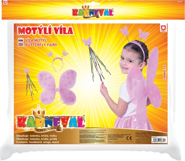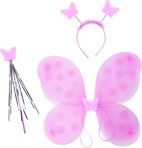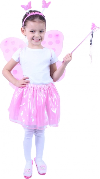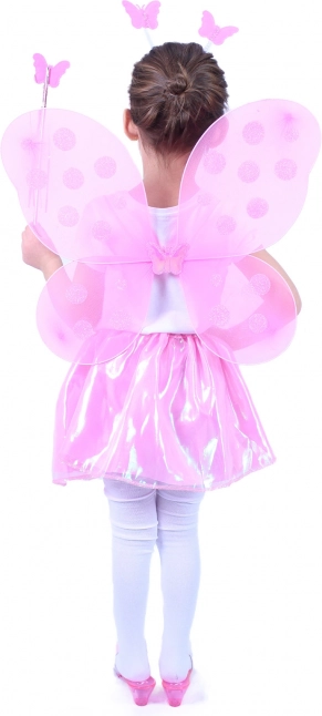Розовите крила с точков десен придават на костюма вълшебен вид и са леки и удобни за деца.