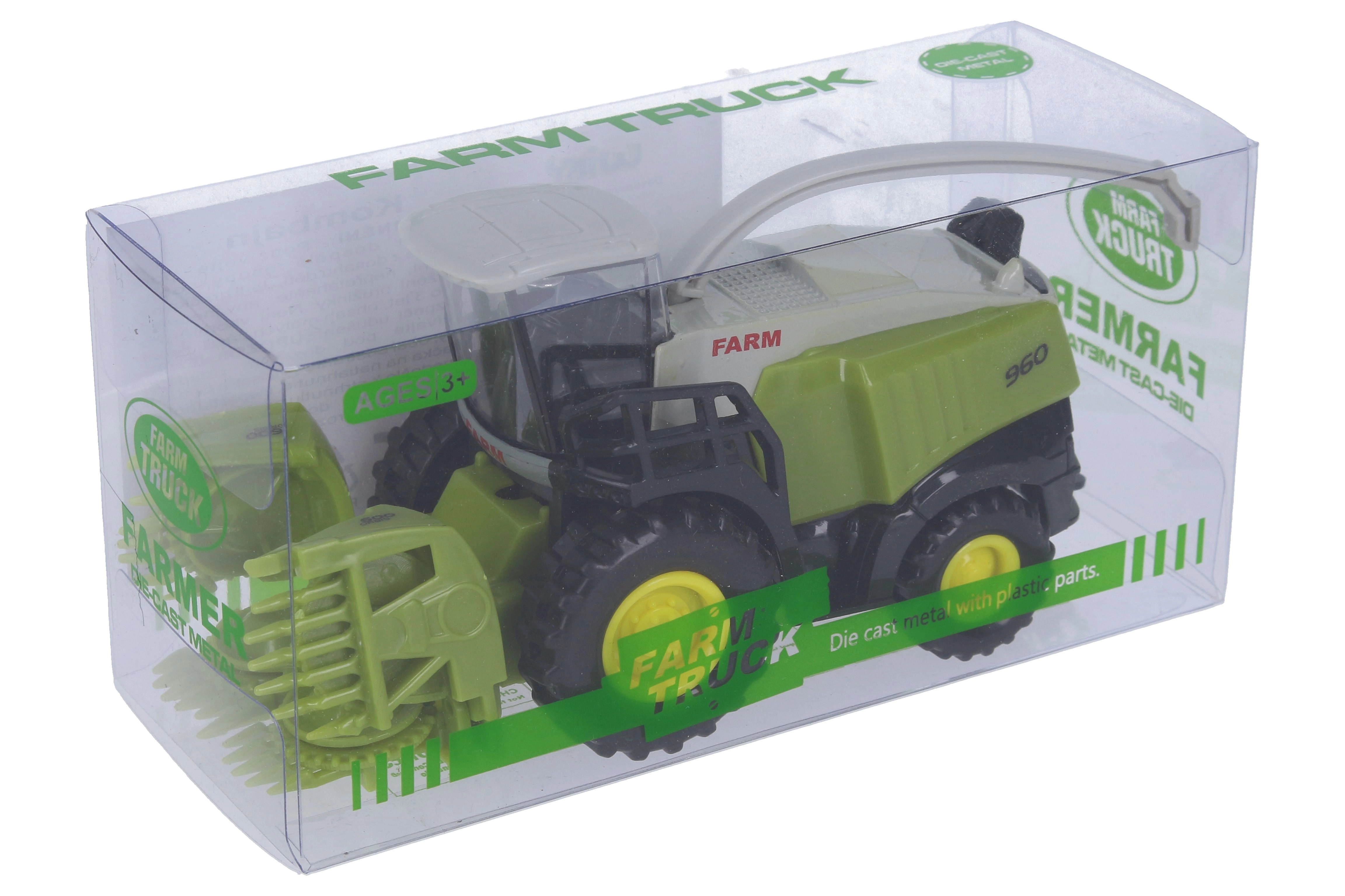 Този детайлно изработен метален комбайн е перфектно допълнение към света на детските селскостопански машини. Благодарение на компактния размер от 13 см удобно ляга в ръката и се управлява лесно. Здравата метална конструкция гарантира дълъг живот и забавление по време на игра.