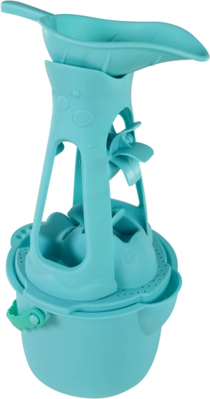 Включва кофичка, лопатка, гребло, две формички и мелничка – идеална комбинация за игри с пясък.
