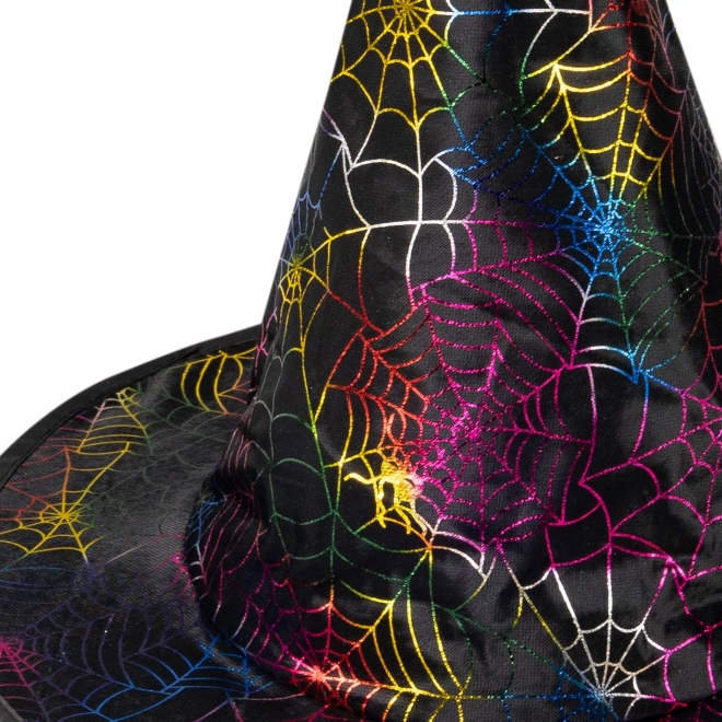 Оживете детския костюм на вещица с тази стилна шапка с многоцветен мотив на паяжина. Благодарение на заострената форма и широката периферия изглежда автентично и игриво.