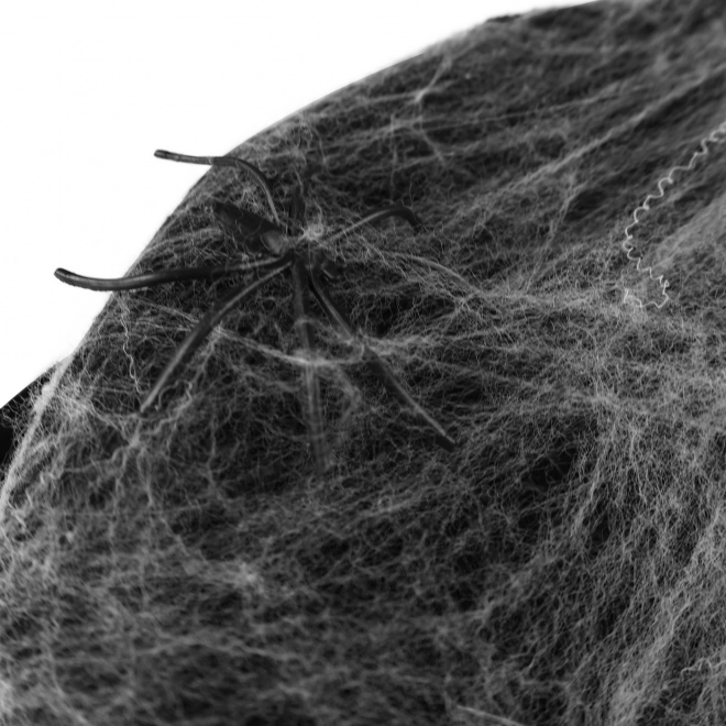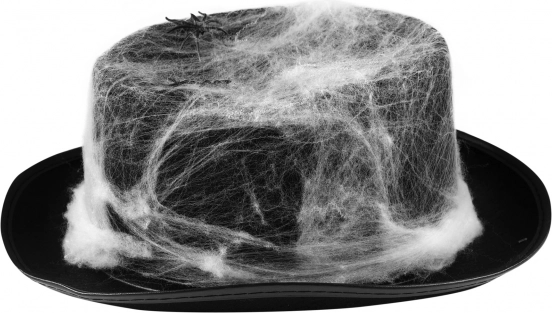 Бялата изкуствена паяжина върху черната шапка създава ярък контраст и изглежда реалистично – идеална за Хелоуин и хорър тематики.