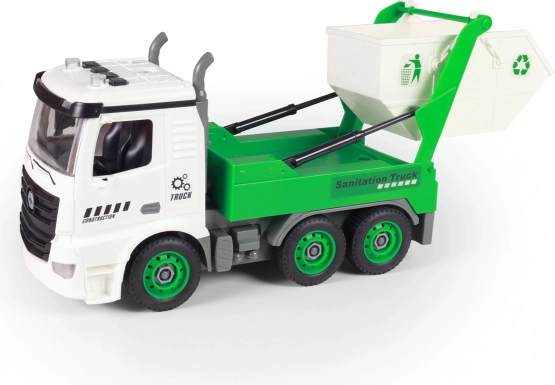 Камионът също свети и издава реалистични звуци, което носи ново ниво на игра. Захранва се от три батерии тип LR44, които са включени в комплекта, така че вашите деца могат веднага да започнат да изследват свят, пълен със забавление, с контейнерен камион с дължина 27 см.