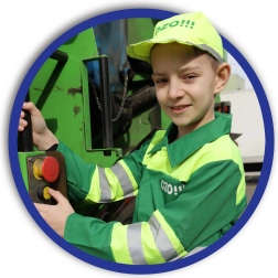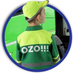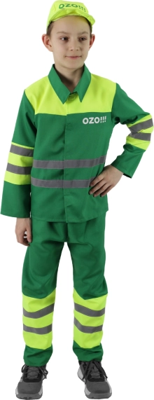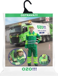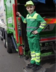Този костюм е идеален за всеки малък почитател на камионите за боклук! Предлага се като комплект, който съдържа блуза с надпис, шапка и панталон, всички с отразителни елементи за по-добра видимост.