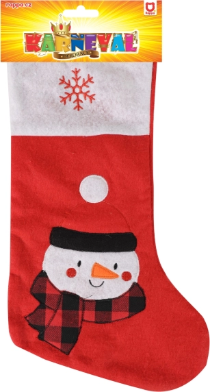 Този червен коледен чорап е украсен с весело изображение на снежен човек, което го прави перфектна украса за празничните ви тържества. Идеален за създаване на магическа атмосфера по време на Коледа.