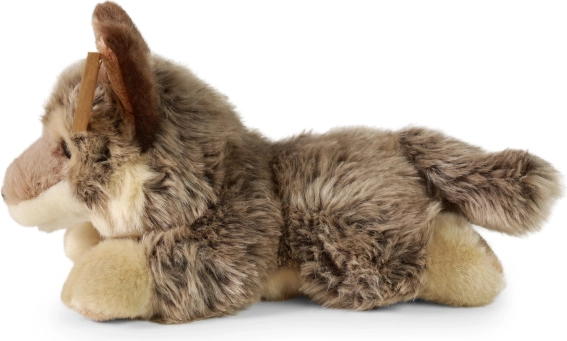 Мекичкият вълк в легнала поза изглежда като жив благодарение на детайлните черти и качествения материал. Пълнежът от рециклирани PET бутилки е на допир неразличим от класическия, безопасен е и сертифициран дори за най-малките деца.
