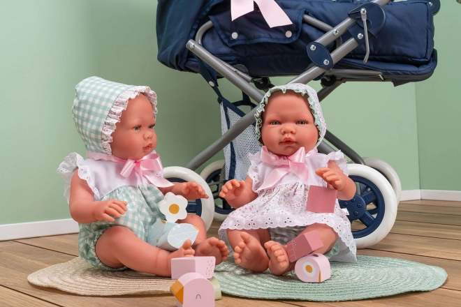 Куклата Мария от семейната марка ASI се произвежда в Испания с внимание към качеството и безопасността. Цялото винилово телце е твърдо и здраво, а същевременно приятно на допир и прецизно оформено във всички детайли, включително половите белези. Реалистичната визия се допълва от немигащи сини очи и фини мигли.