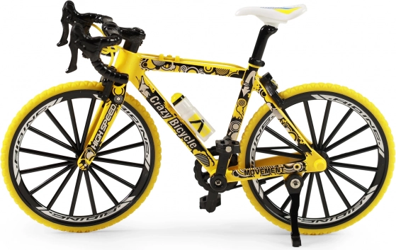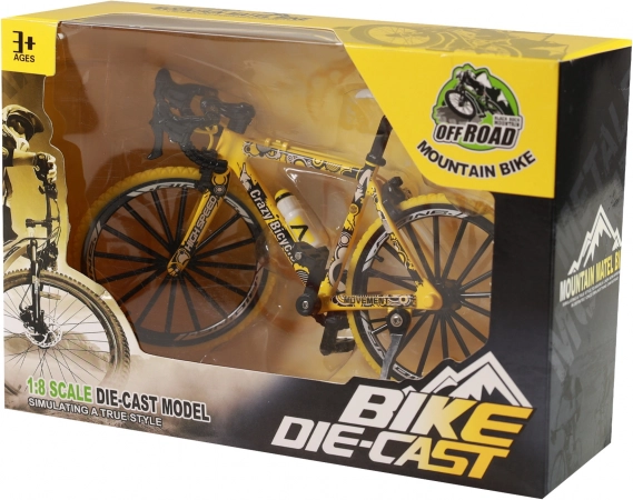 Миниатюрното жълто планинско колело е чудесен избор за деца, които обичат действието и движението, както и за възрастни колекционери. Благодарение на свободния ход на колелата лесно потегля и се движи гладко по равна повърхност. Реалистичната изработка изпъква както на рафта, така и по време на игра.