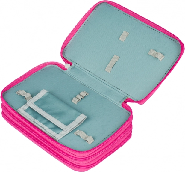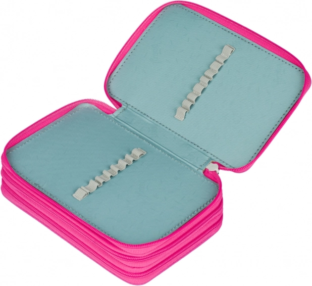 Несесерът е оборудван с еластични примки, които побират и по-дебели моливи и флумастери, като всички принадлежности остават сигурно на мястото си.
