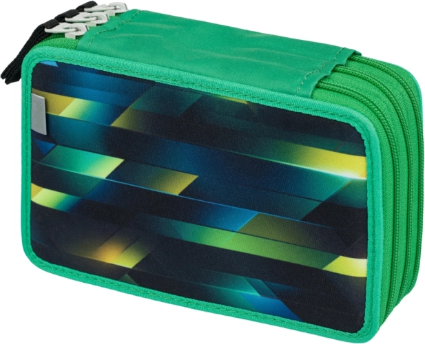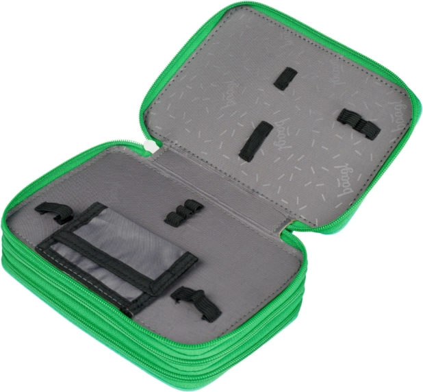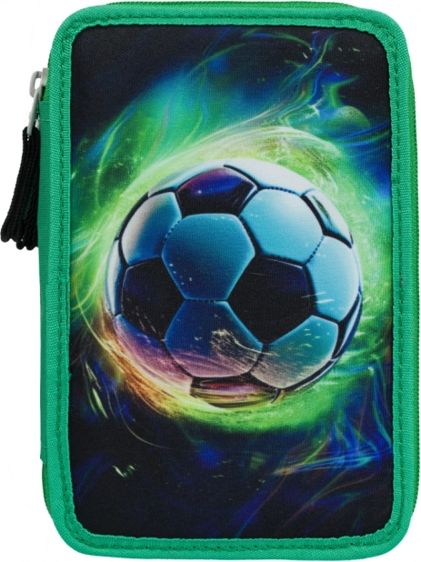 Трислоен ученически несесер с дизайн на футболна топка предлага допълнително пространство за всички пособия за писане, включително дебели цветни моливи и флумастери, благодарение на пригодените ластици. Оборудван е с качествени ципове и има подсилен гръб за лесна работа.