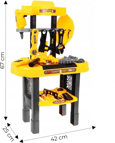 Тази детска работилница предлага реалистичен вид и включва всичко важно, от което малките инженери се нуждаят за игра. Благодарение на тази работилница децата могат да развиват мануални умения, въображение и способност за решаване на проблеми по забавен начин. Това е перфектен подарък, който гарантира часове творческо забавление и образователни активности.