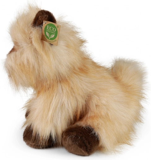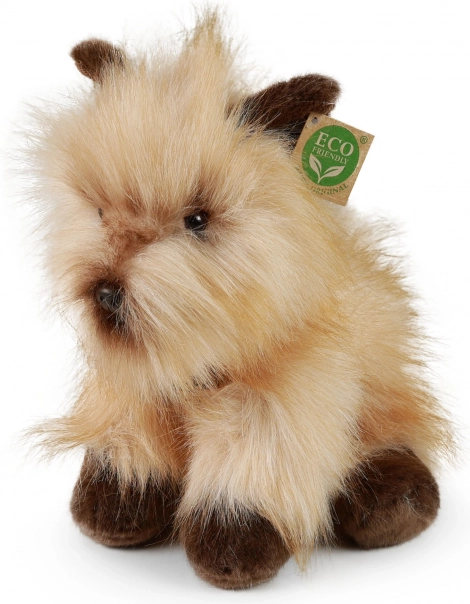 Очарователно плюшено куче керн териер с размер 30 cm ще зарадва както децата, така и колекционерите. Ръчно ушито от висококачествен мек плюш и изглежда реалистично. Благодарение на eco-friendly пълнеж от рециклирани PET бутилки е щадящо към природата. Страхотен подарък за любителите на меките плюшени играчки и качествената изработка.