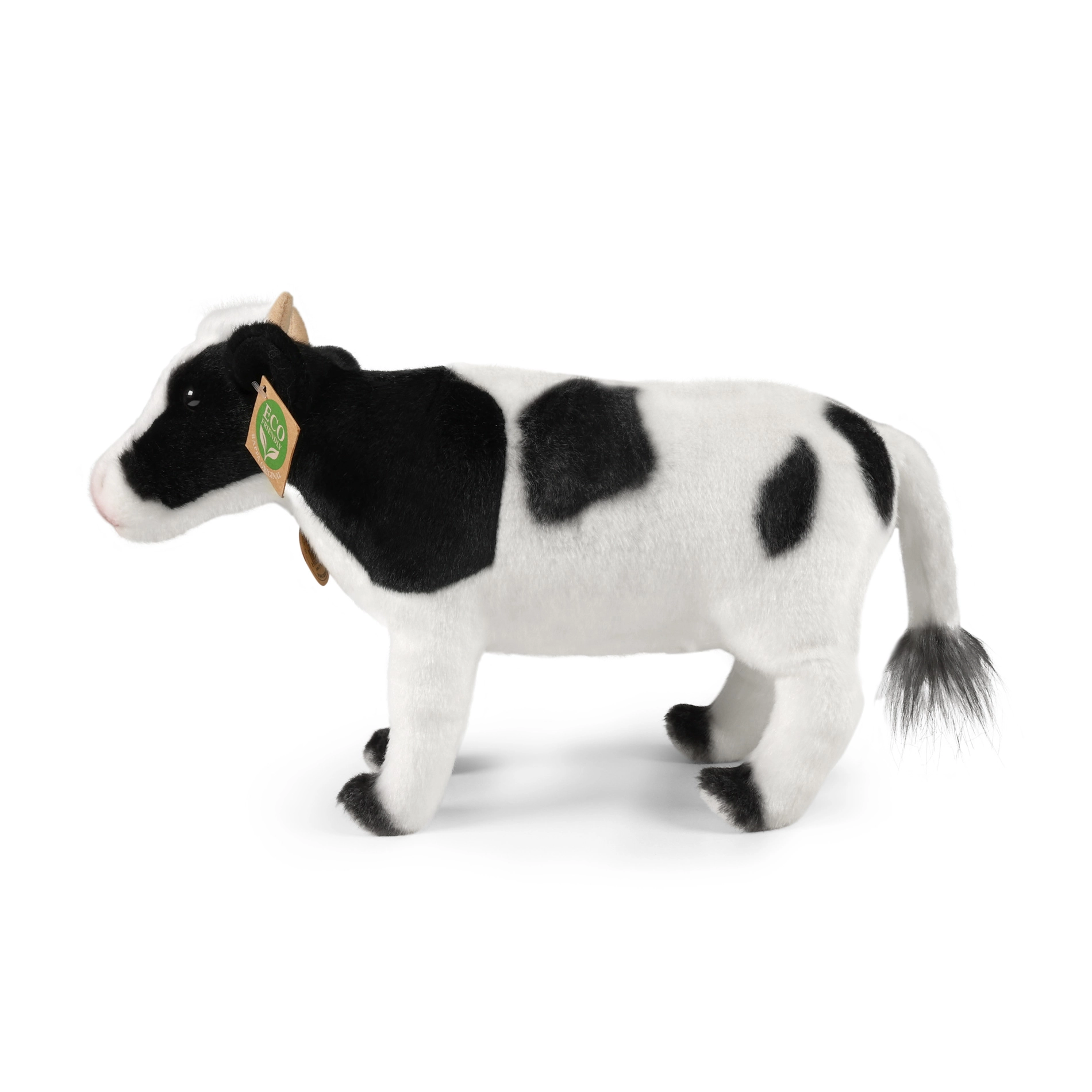 Тази плюшена крава е не само красива, но и щадяща околната среда благодарение на своята еко пълнеж. Пълнежът е произведен от рециклирани PET бутилки, което осигурява безопасност за всички възрастови групи.