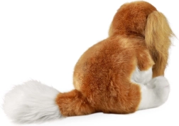 Детайлна изработка на породата кавалер кинг чарлз шпаньол с дълги ушички, блестящи очи и пухкава опашка. Нежният плюш кани към непрестанно гушкане.