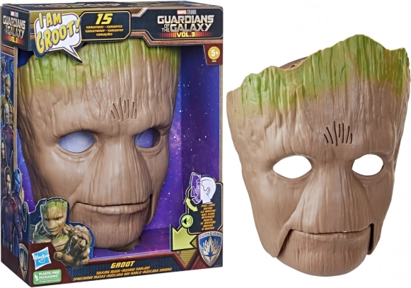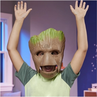Тази впечатляваща маска на Грут е създадена да пресъздаде популярния персонаж от поредицата Пазители на галактиката, по-специално от третата част. Изработена е от безопасна пластмаса и има подвижна челюст, с която децата могат да манипулират, за да чуят любимите реплики в до 15 различни вариации.