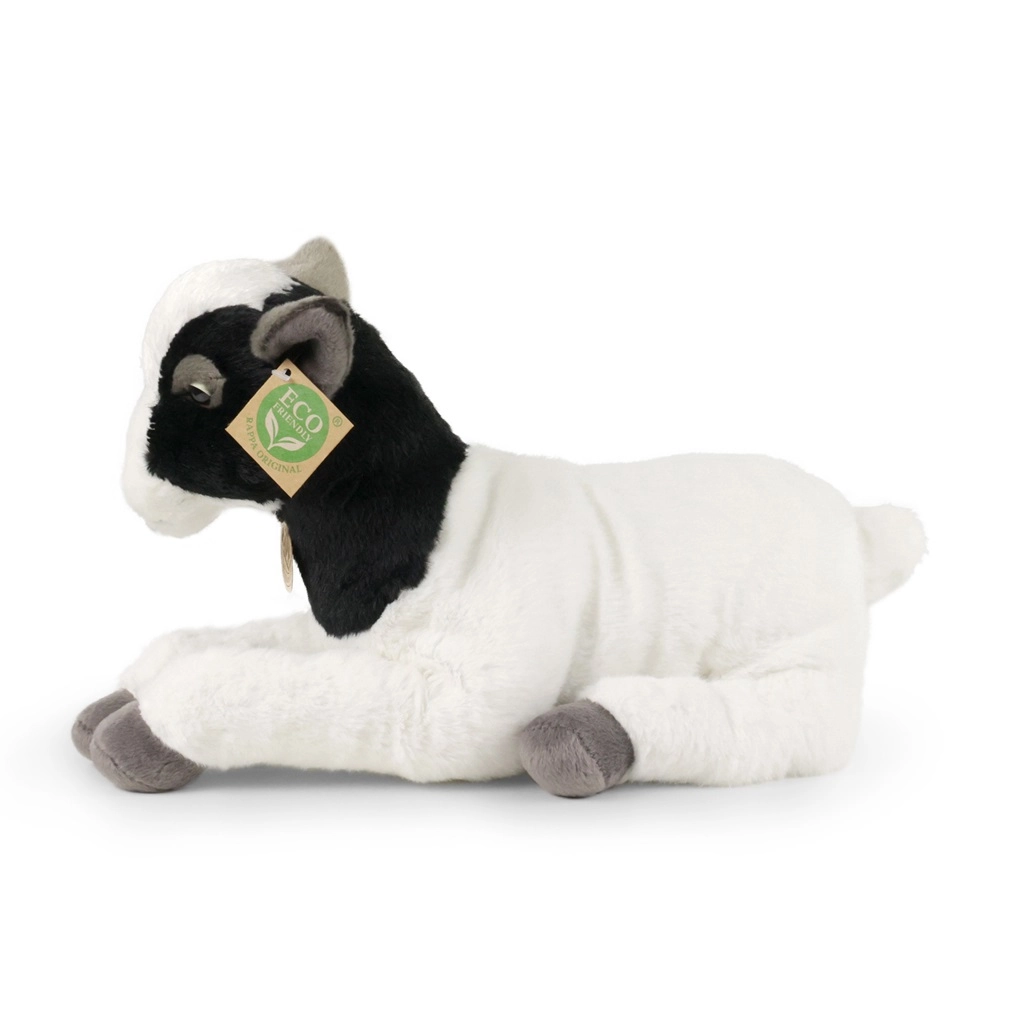 Очарователна плюшена коза с размер 30 см, ръчно ушита от висококачествен, мек материал, изглеждаща като истинска. Идеална е за подарък за деца и любители на животните. Благодарение на ECO‑FRIENDLY пълнежа от рециклирани PET бутилки е щадяща към природата. Отличава се с реалистична изработка, нежен плюш и безопасен дизайн за най‑малките.