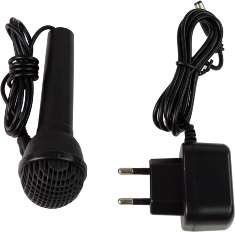 - Клавиатура, микрофон, поставка за ноти, захранващ кабел