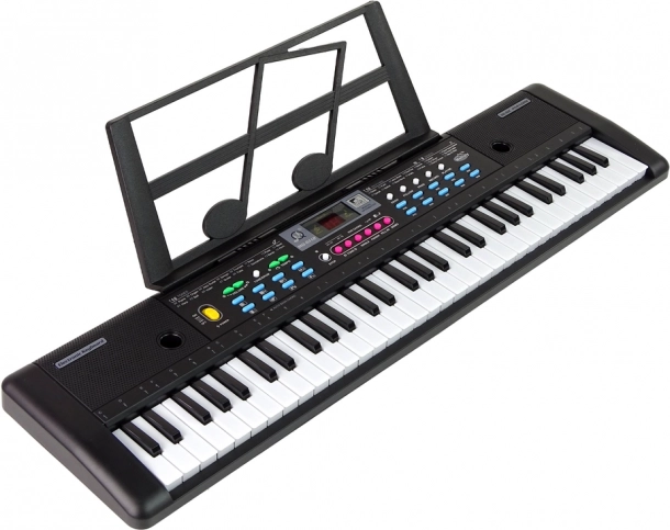Тази лека и преносима клавиатура за деца е чудесен избор за първите стъпки в света на музиката. Меките, лесни за натискане клавиши щадят китките, а ергономичният дизайн осигурява удобно свирене. Благодарение на микрофона малките музиканти могат да пеят любимите си песни, а с поставката за ноти текстовете и нотите са винаги пред очите им.