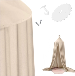 Стилен висящ балдахин в бежов цвят превръща детската стая в уютно място за игра и сън. Лекият плат и щедрите размери създават приятно уединение и внасят чар в интериора. В комплекта ще откриете и необходимите монтажни елементи, така че инсталацията е лесна и бърза.