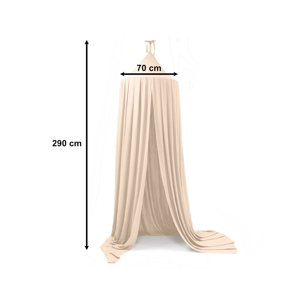 Бежовият балдахин е идеален като спокойно убежище над кошарата, читателски кът или детско скривалище. Фината, въздушна материя изглежда елегантно и подхожда на повечето стилове в обзавеждането на детската стая.