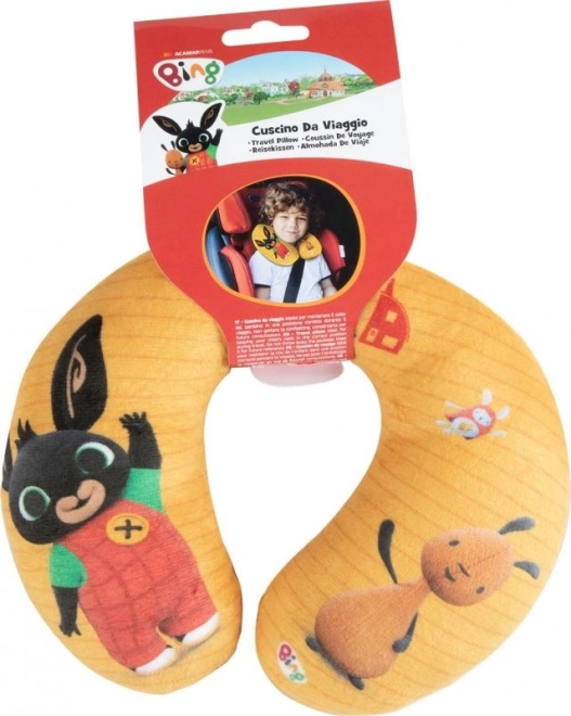 Детска пътническа U-образна възглавничка с мотив BING, която осигурява опора за шийния отдел и комфорт при пътуване с кола, автобус или самолет. Изработена е от мек микроплюш, приятен на допир и отлично се адаптира към главата и шията.
