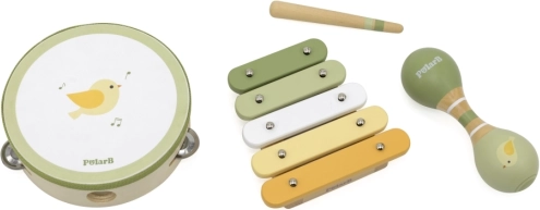 Детският музикален комплект от PolarB предлага три цветни и безопасни инструмента за малки музикални ентусиасти. Комплектът включва тамбура, ксилофон и маракаси, които подпомагат развитието на слуховите способности и координацията между ръце и очи.