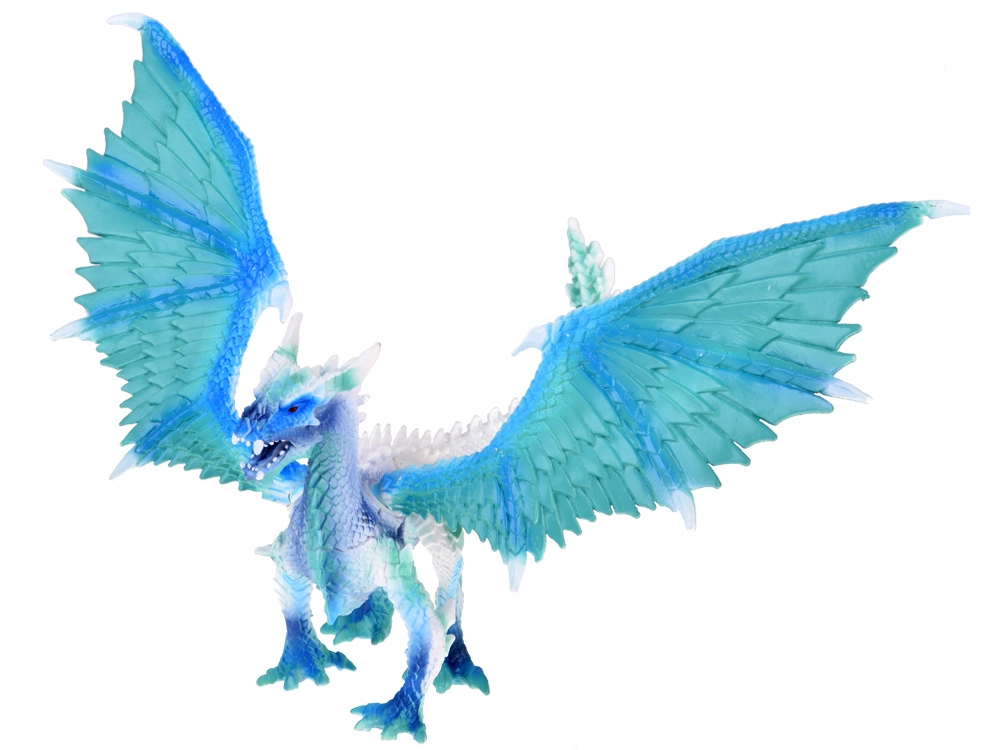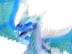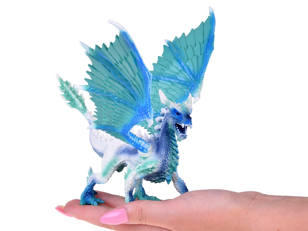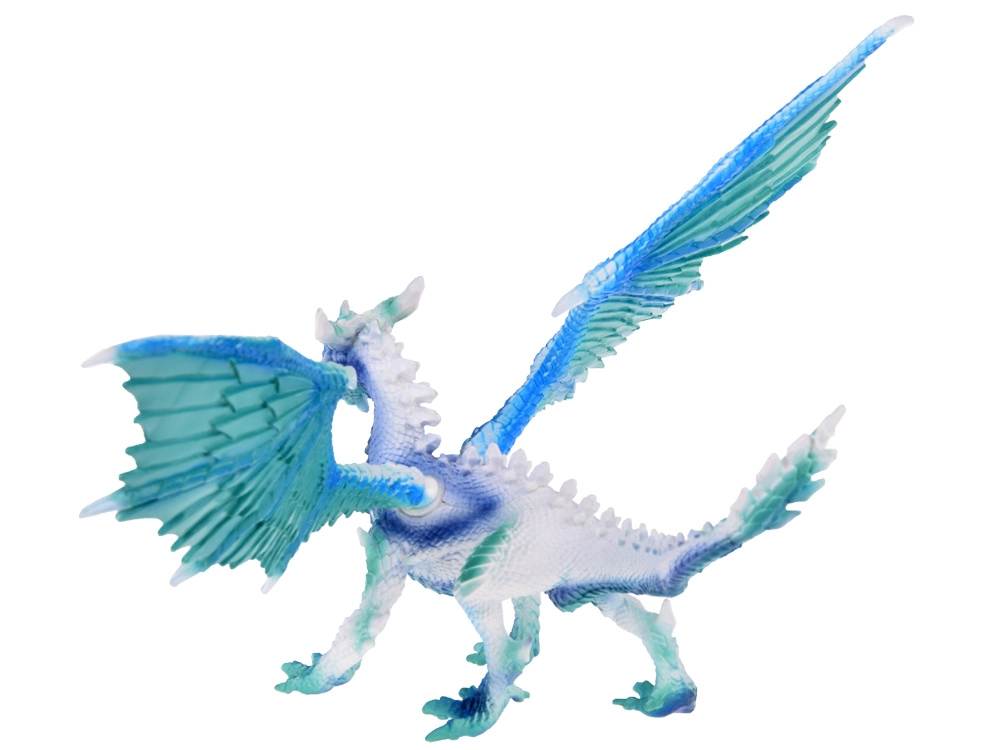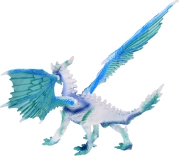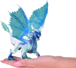 Впечатляваща фигура на леден дракон в синьо‑бели тонове, която впечатлява с прецизната изработка, реалистичните детайли и подвижните крила. Здравата пластмасова конструкция, ръчно рисуваните детайли и стабилната стойка правят тази фигура чудесно допълнение както за игра, така и за колекция.