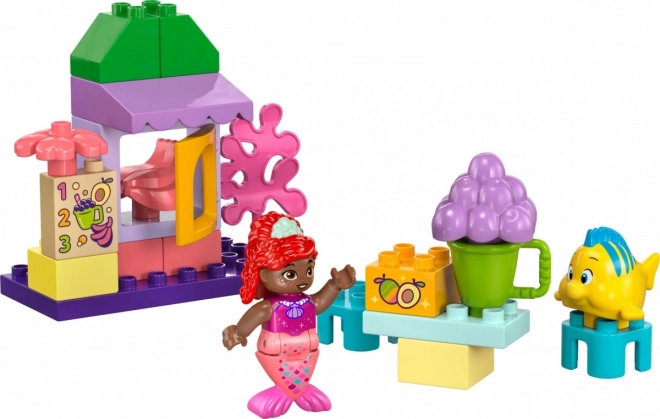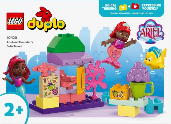 Потопете се в света на приказните игри с Ариел и Цвърчко! Този комплект LEGO DUPLO включва красиво изработен щанд-кафене, където децата могат да упражняват своята представa и креативност. Благодарение на двете фигурки – Ариел и Цвърчко от Disney Junior, играта е забавна и поучителна.