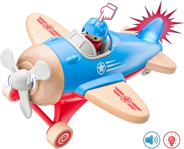 Големият играчки самолет с пилот е проектиран за интерактивна игра и стимулира сетивата благодарение на звуковите и светлинните ефекти. Идеален за малки деца от 18 месеца.