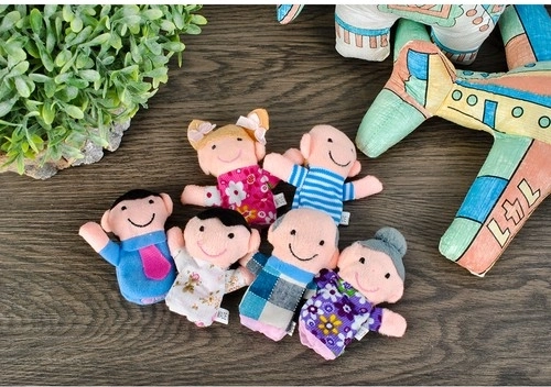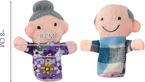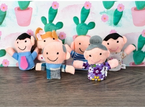 Нашият комплект включва 6 кукли за пръсти, които представят семейни персонажи – от баба и дядо до децата. Подходящи са за малките детски ръчички, но и възрастните могат лесно да ги управляват на по-малките си пръсти.