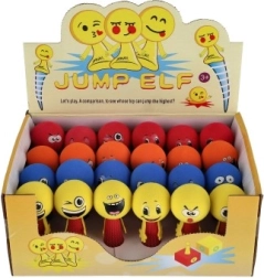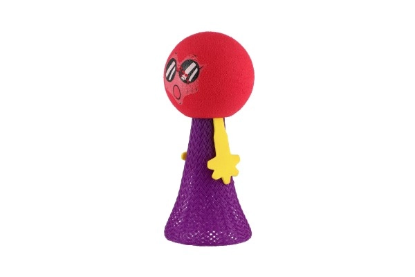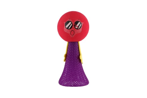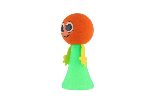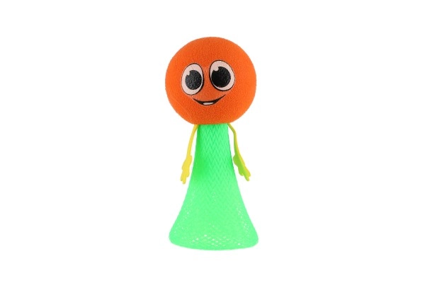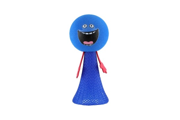 Поставете тялото на фигурката на маса или под, стиснете и отпуснете. Топката се оттласква и прави ефектен скок. Страхотно за координационни игри, малки състезания и като антистрес помощник.