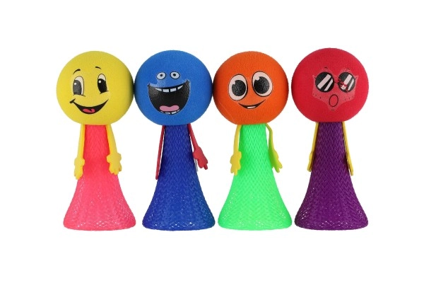 Скачащата топка с фигурка е идеална за бърза доза радост и движение. Благодарение на леката пяна, еластичното конично тяло и умния принцип „стисни–пусни“ тя скача високо и забавлява деца и възрастни. Цветните варианти и сладките личица насърчават фантазията и спонтанната игра.