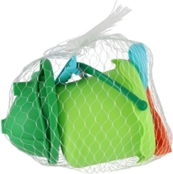 Леката и издръжлива пластмасова изработка е проектирана за ежедневна игра навън. Комплектът е идеален за пясъчника, градината и морето, а благодарение на мрежестата опаковка лесно го носите навсякъде със себе си. Страхотен избор за деца от 3 години, които искат да развиват фантазията и моторните си умения по време на игра на чист въздух.