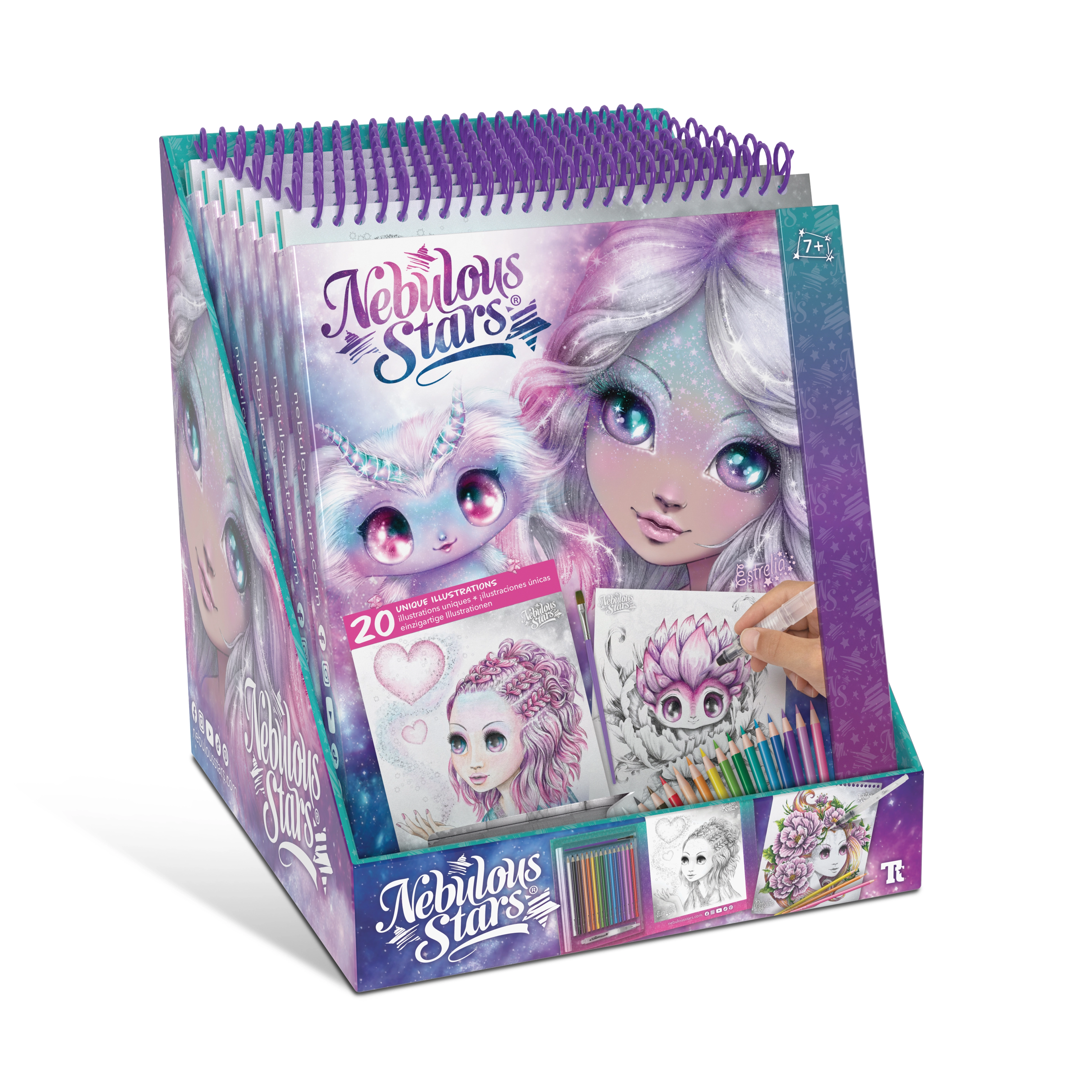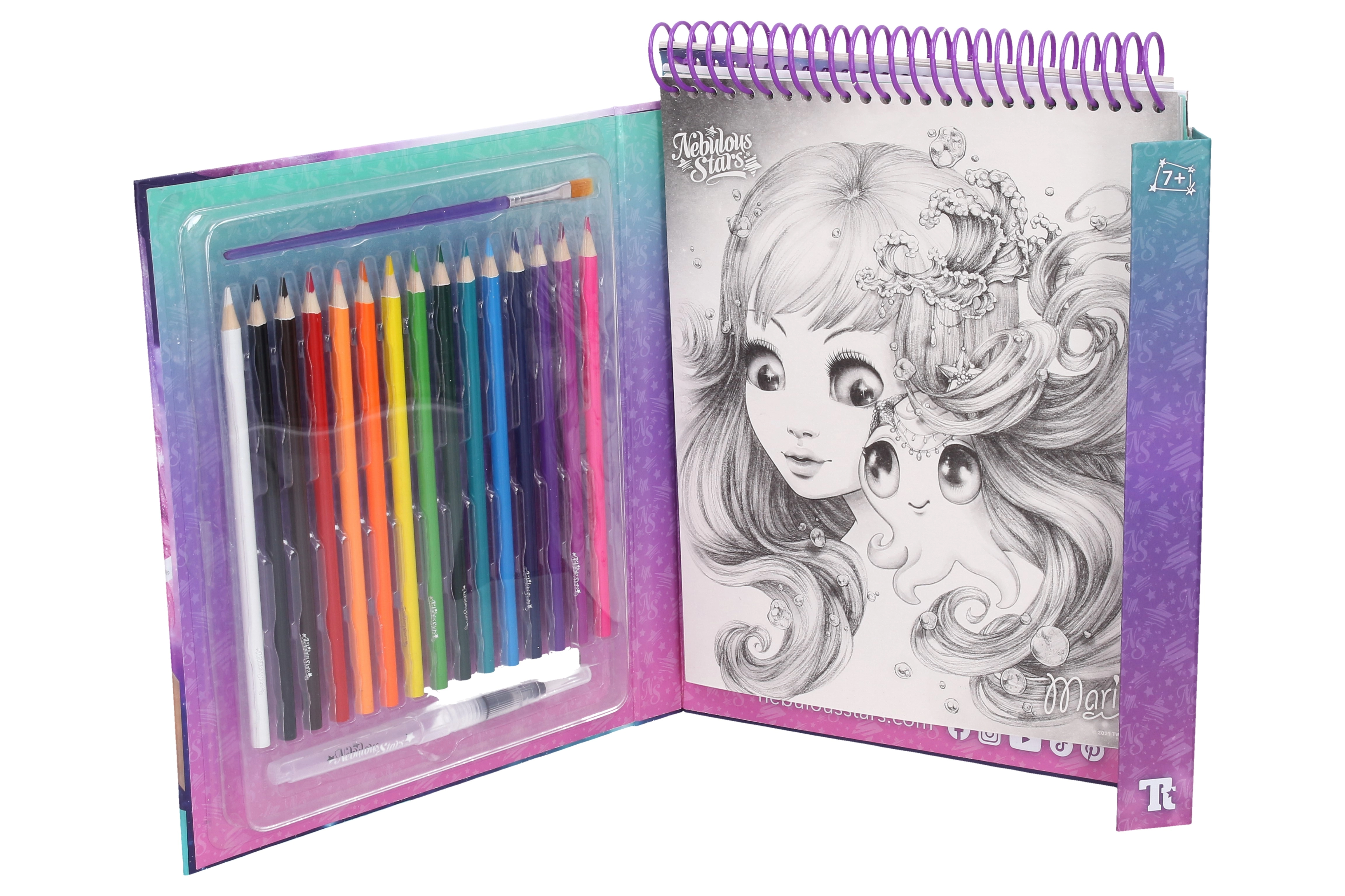 Насладете се на света на Nebulous Stars с тези уникални книжки за оцветяване, които съдържат 20 ръчно рисувани илюстрации и 15 акварелни маркера. Перфектни за креативни деца!