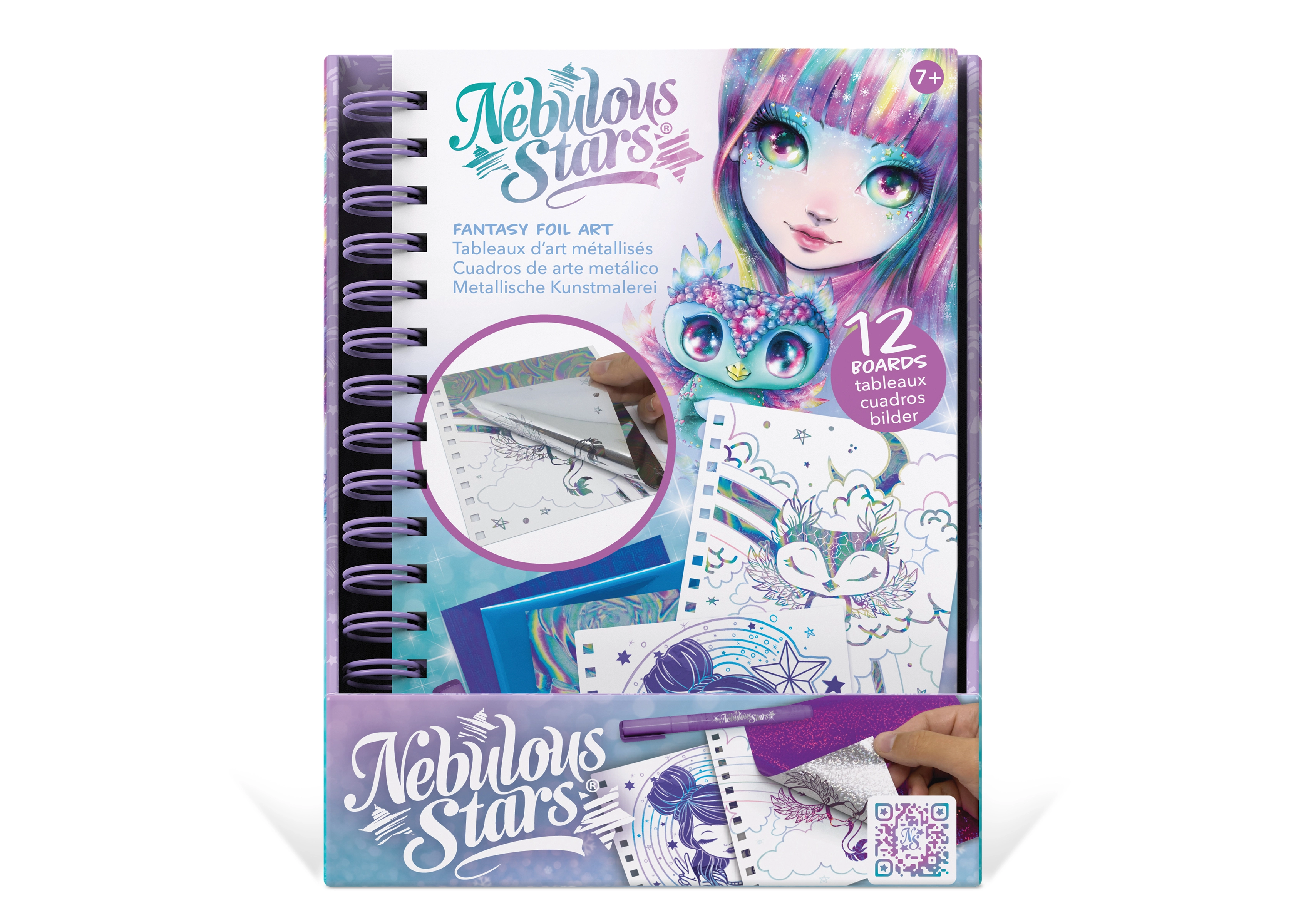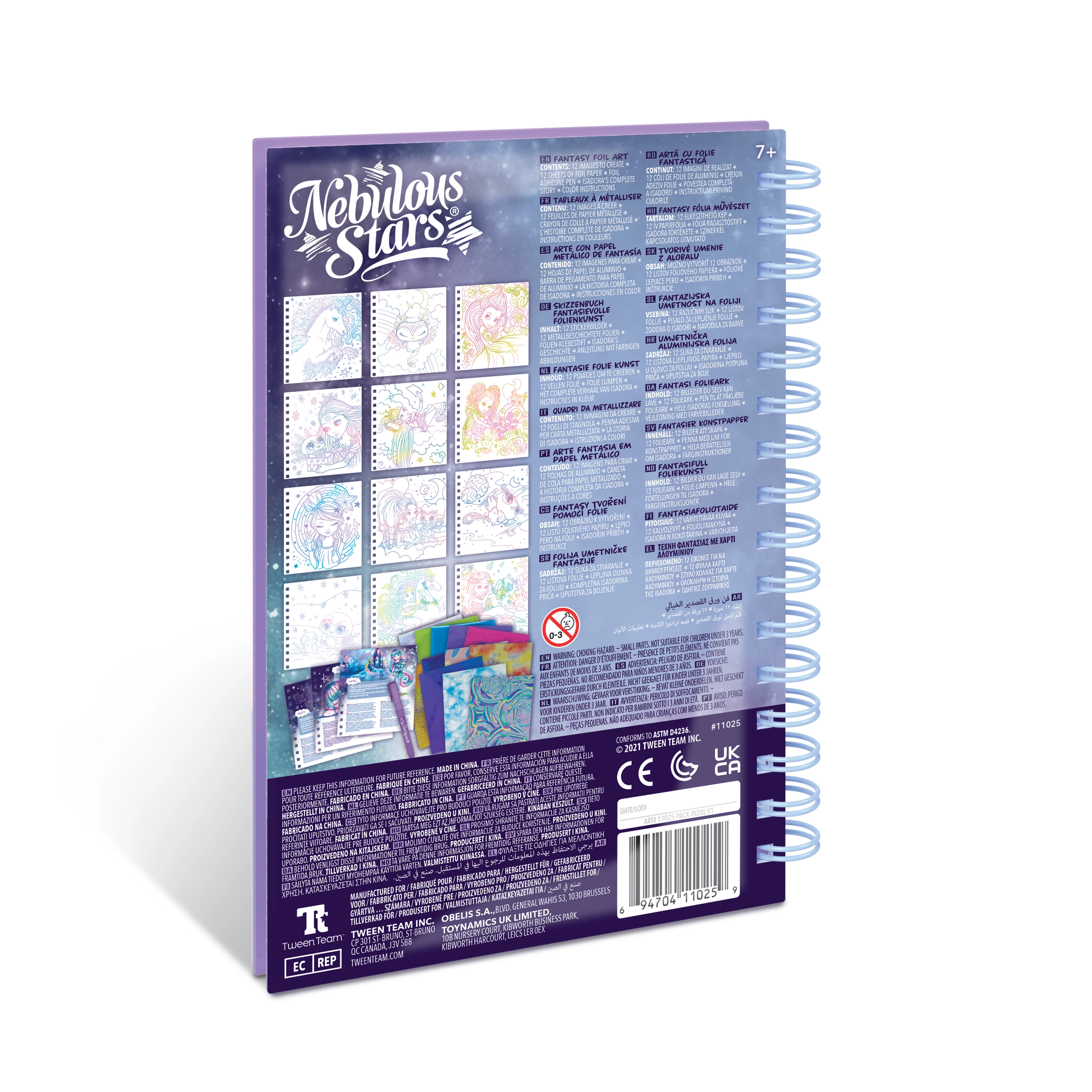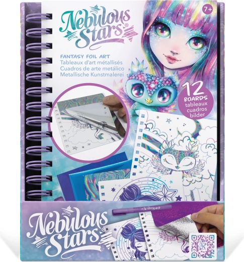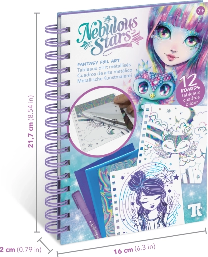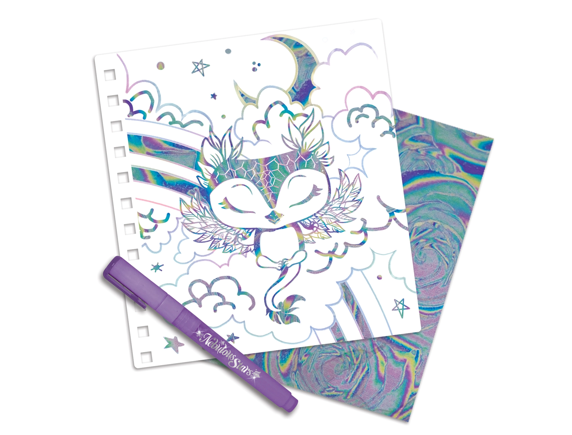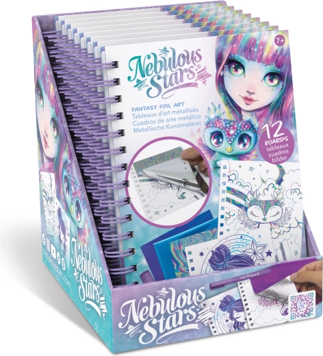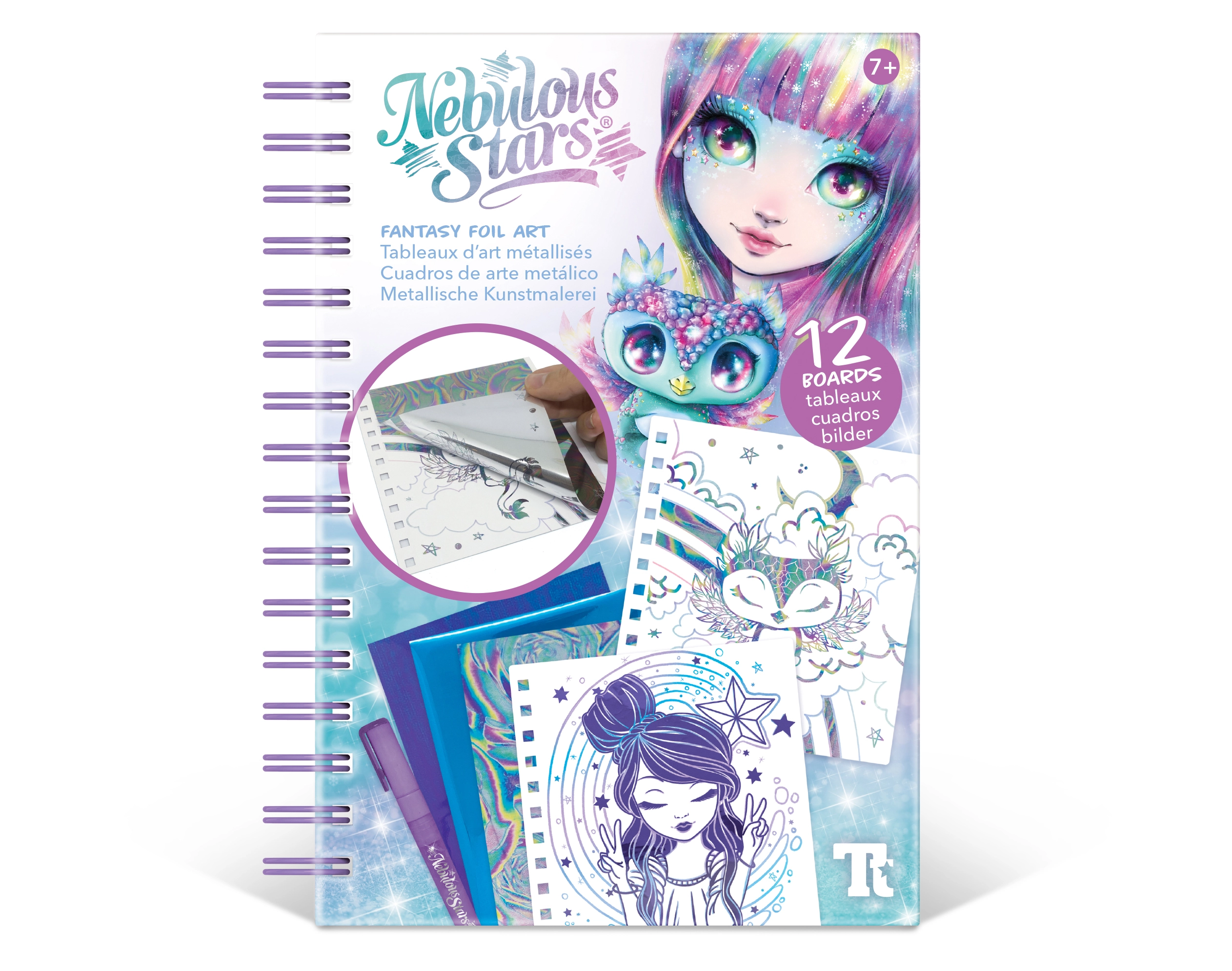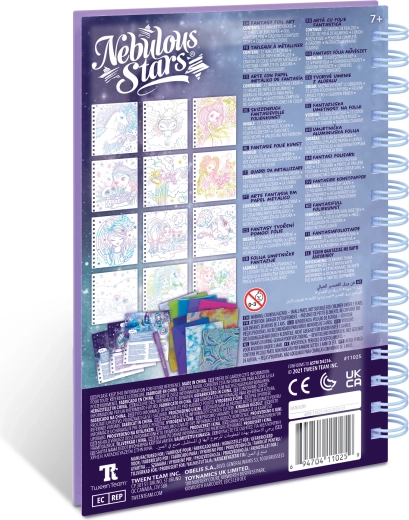 Този оригинален творчески комплект съчетава вълшебния свят на NEBULOUS STARS с лесната техника за декориране с метализирани фолия. Достатъчно е да нанесете лепило с перото, да поставите фолиото и леко да го отлепите – получава се ярък, блестящ ефект, който превръща всяка картинка в малко художествено произведение.