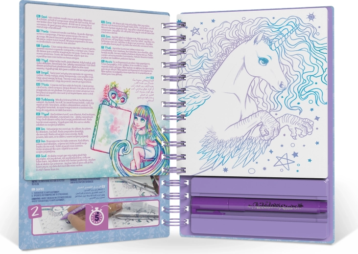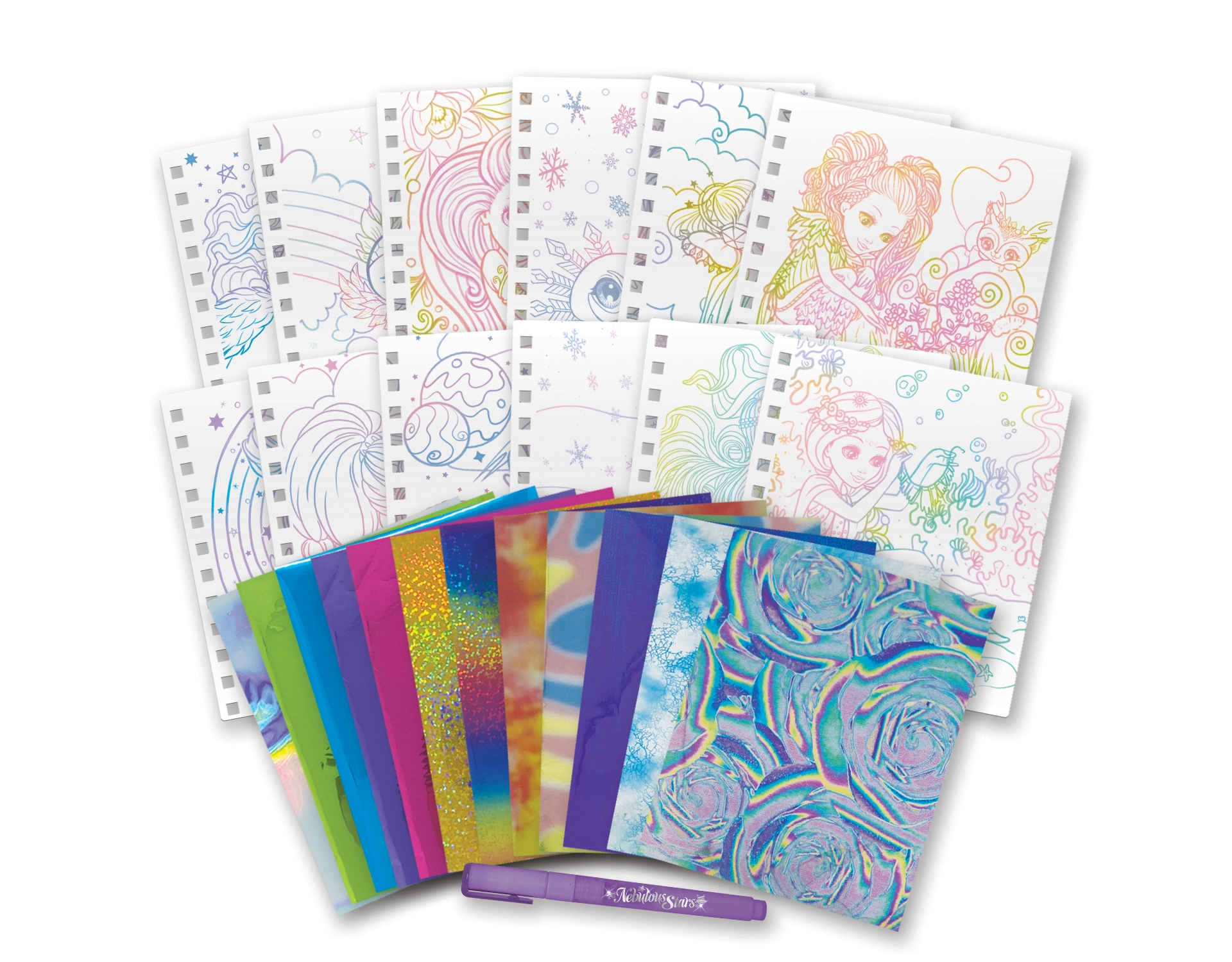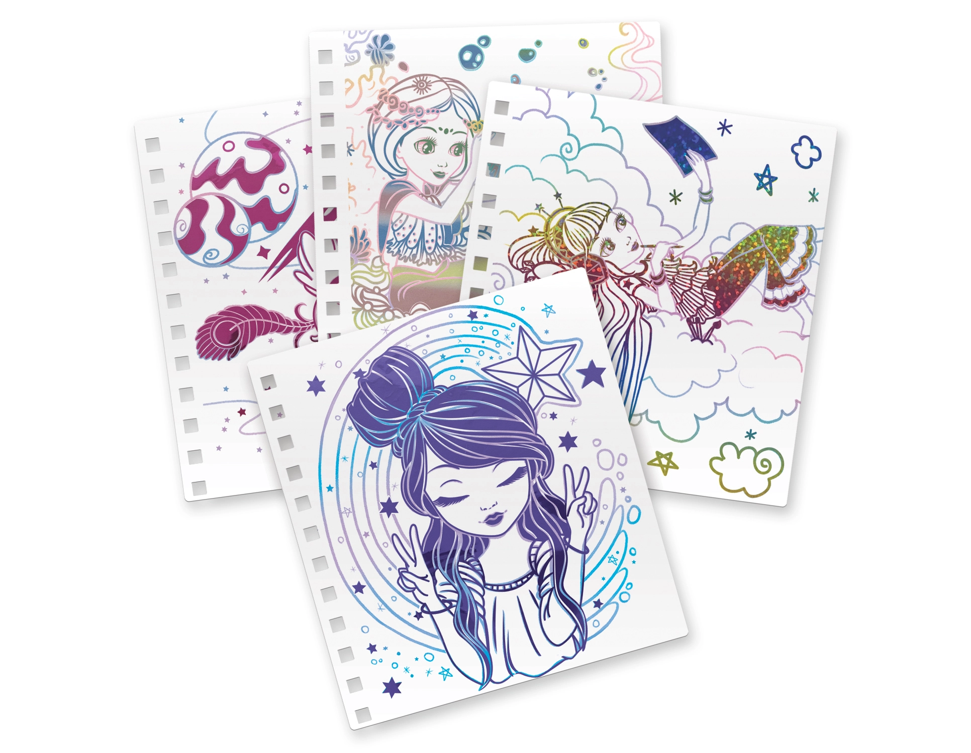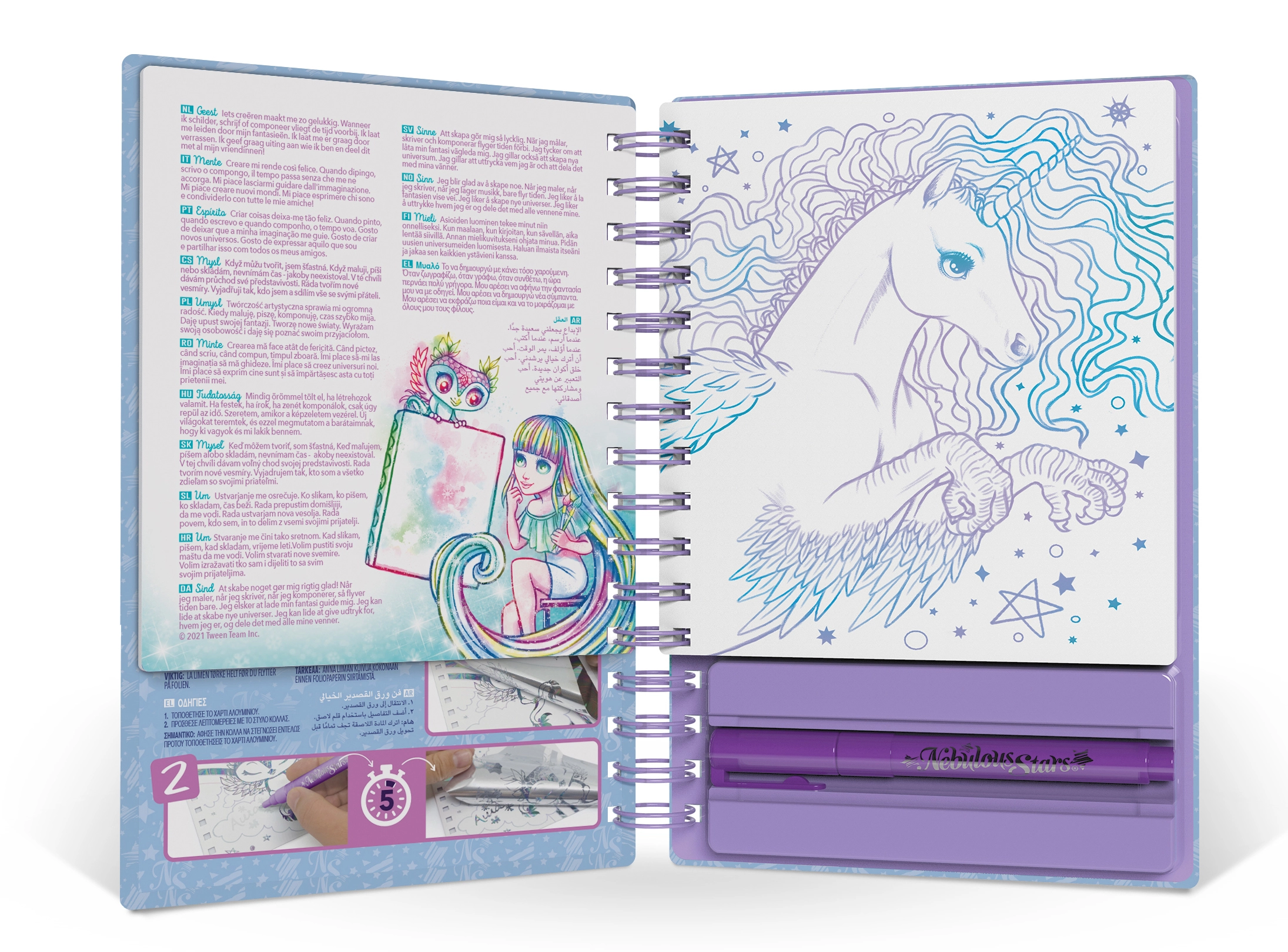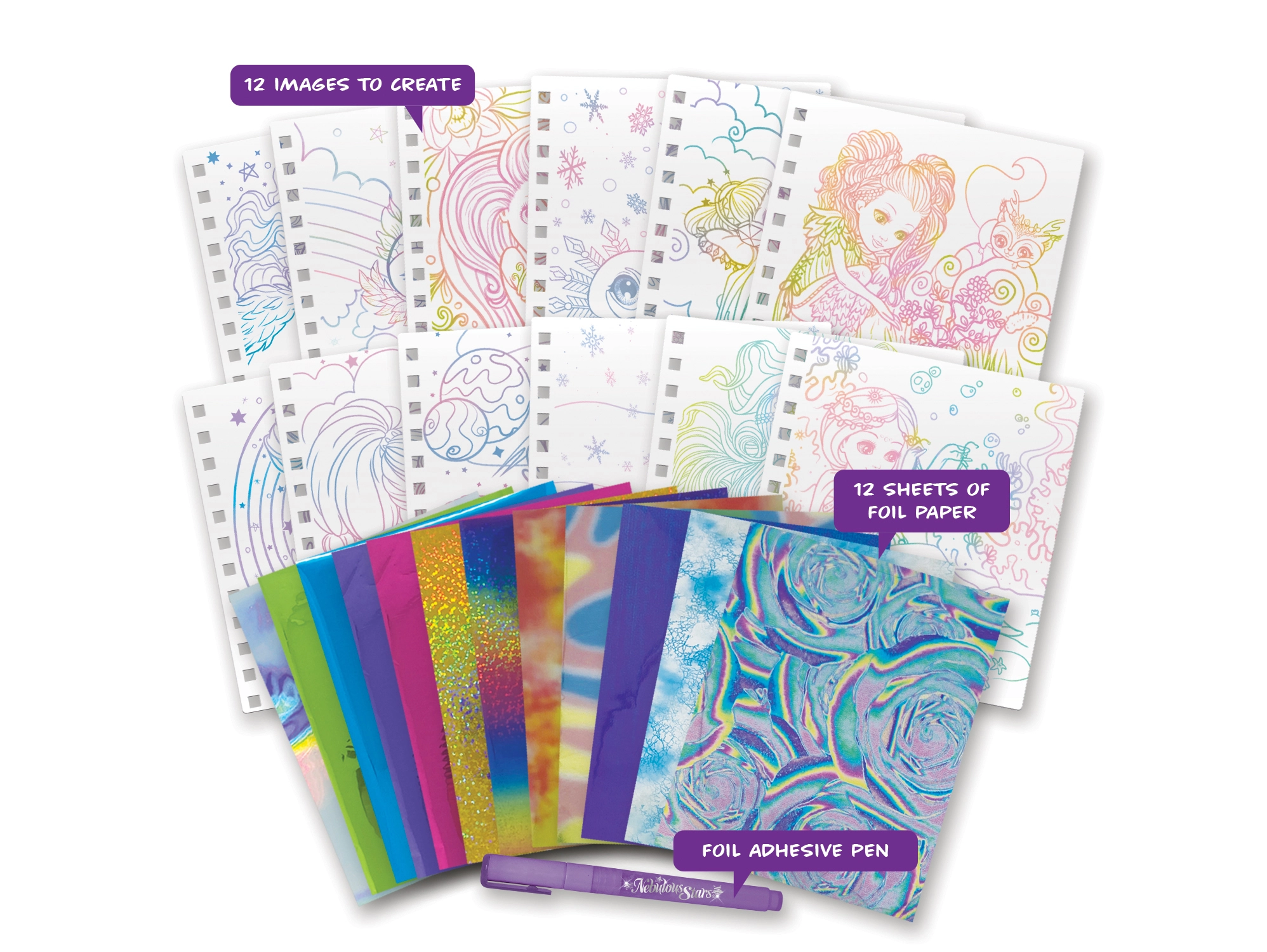 Този оригинален творчески комплект съчетава вълшебния свят на NEBULOUS STARS с лесната техника за декориране с метализирани фолия. Достатъчно е да нанесете лепило с перото, да поставите фолиото и леко да го отлепите – получава се ярък, блестящ ефект, който превръща всяка картинка в малко художествено произведение.