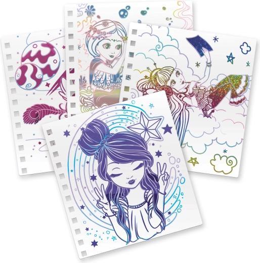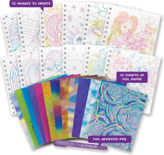 Пакетът предлага богато съдържание: 12 предварително отпечатани картинки с фентъзи мотиви, 12 листа фолио с различни ефекти и подробни инструкции. Децата развиват фината моторика, търпението и творчеството си и създават декорации, подходящи за излагане или подаряване.
