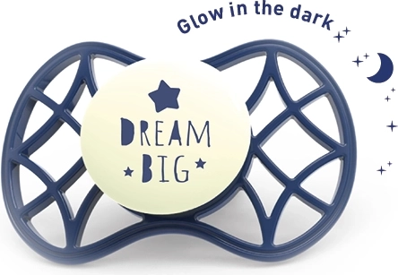 Леката, решетъчна конструкция повишава дишаемостта и минимизира натрупването на слюнка около устата, като по този начин помага да се предотврати раздразнение на чувствителната детска кожа. Практичните светлинни елементи в тъмното улесняват ориентирането през нощта, а защитната капачка поддържа залъгалката чиста. Капачката може да се използва за бърза стерилизация в микровълнова фурна – достатъчно е да добавите вода.
