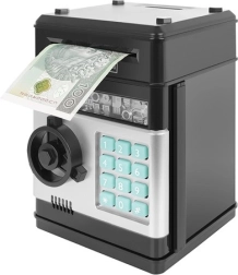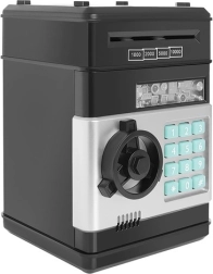 Научете децата да управляват парите разумно с тази електронна касичка във формата на мини сейф. Позволява вкарване на банкноти и монети, отваря се след въвеждане на четирицифрен PIN и предлага светлинни и звукови ефекти, включително английски глас. Идеална за деца от 6 години – забавен и безопасен начин за обучение в спестяване.