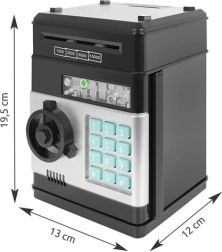 Електронната касичка KRUZZEL с дизайн на мини сейф е чудесен спътник за малки спестовници. Лесно се поставят както банкноти, така и монети, а достъпът до спестяванията е защитен с личен четирицифрен PIN. Практично напомняне след 20 секунди сигнализира за отворена вратичка.