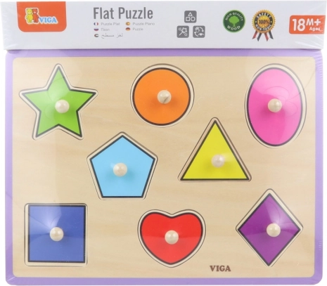 Дървените пъзели на марката Viga са сред водещите играчки за деца, които служат не само като традиционна сглобяемa игра, но и помагат на децата да усъвършенстват мануалните умения и разпознаването на форми. Тази играчка подпомага развитието на прецизността на движенията на ръцете и подобрява координацията око-ръка при деца още от 18 месеца. Благодарение на пъстроцветните елементи пъзелът привлича вниманието на децата и ги насърчава към игра.