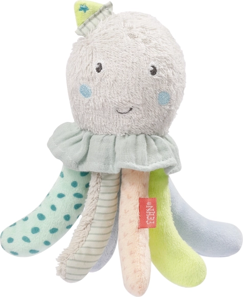 Къпането оттук нататък ще бъде още по-забавно. Октоподчето с вградено топче плува на повърхността, насърчава децата да откриват водата и подпомага развитието на сетивата и фината моторика. Комбинацията от меки тъкани – хавлия, муселин, велур, букле и принтирана тъкан – е приятна на допир и щадяща към чувствителната детска кожа.
