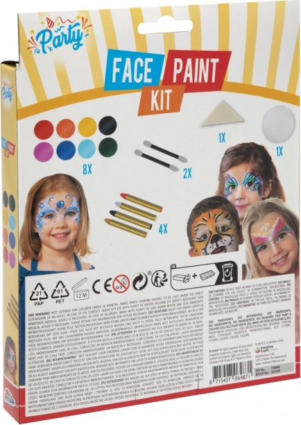 Комплектът за рисуване по лицето е идеален за всяко парти, където искате да блеснете с креативни дизайни. Съдържа осем цвята за лице, включително живи и наситени тонове, които децата обожават. Нанасянето е лесно — просто нанесете внимателно цветовете върху лицето или тялото с апликатора. За по-големи площи използвайте гъбичката за равномерно покритие.