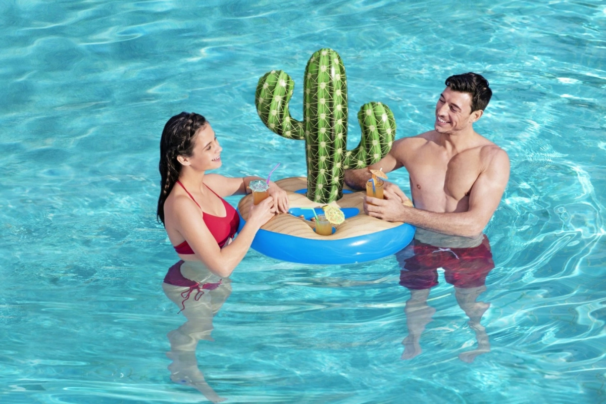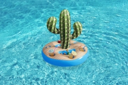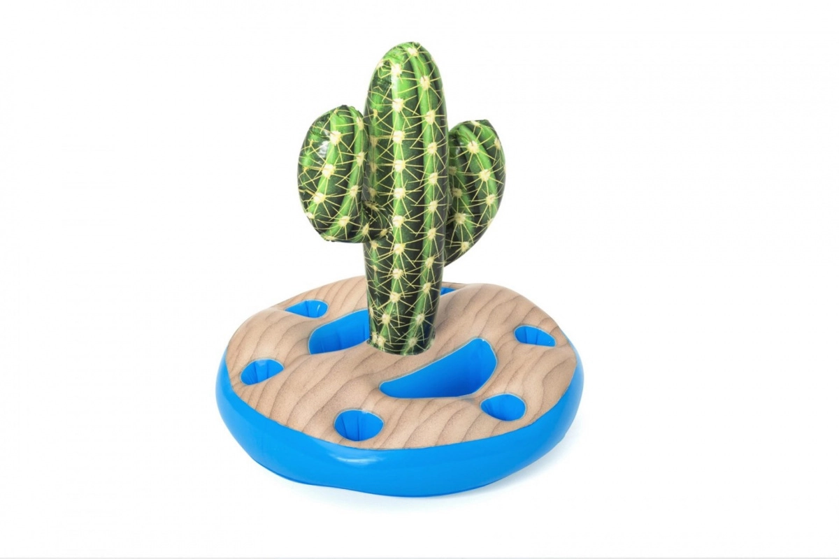 Надуваемият държач за напитки Bestway Кактус превръща всяко къпане в приятелско парти. Шестте практични държача поддържат чашите и кеновете стабилни на повърхността, а две интегрирани охлаждащи отделения се грижат за освежаването през целия ден. Издръжливото PVC и обмисленият дизайн осигуряват дълъг живот и лесно съхранение.
