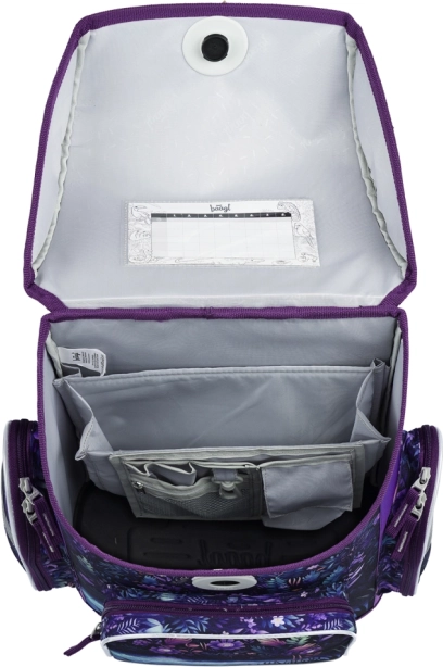 Раницата има магнитно закопчаване Fidlock за бързо отваряне чрез завъртане на катарамата и автоматично затваряне. Вътре ще откриете прозрачен джоб с учебна програма и практичен органайзер за равномерно разпределение на тежестта. Налице са изолиран преден джоб, две странични джобчета за бутилка и стабилно твърдо дъно, което запазва формата.