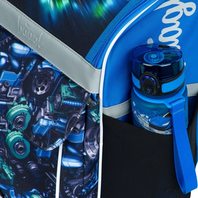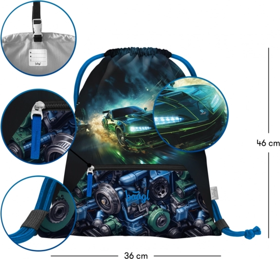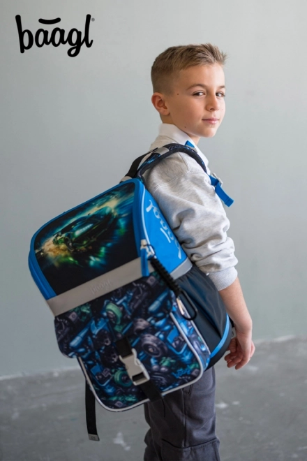 Училищен комплект Baagl Zippy състезателна кола за първите училищни години включва ергономична раница с плъзгаща се система ERGO ADJUSTABLE SYSTEM, едноетажен несесер и торбичка с джоб. Раницата има отваряне с капак на панта, функционален органайзер, светлоотразителни елементи и водоустойчив материал за ежедневна надеждност.