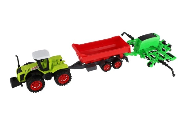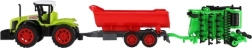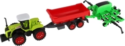 С яркозелен трактор и контрастно червено ремарке и врата, играчката привлича вниманието на децата и стимулира тяхната креативност.