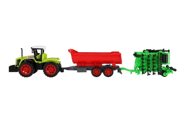 Тракторът с ремарке и врати е страхотна играчка за малки фермери. С дължина 55 см този модел предлага реалистично забавление и висококачествена конструкция, която издържа на интензивни детски игри. Ремаркето и вратите се прикачват и откачат лесно, което позволява на децата да експериментират с различни сценарии.